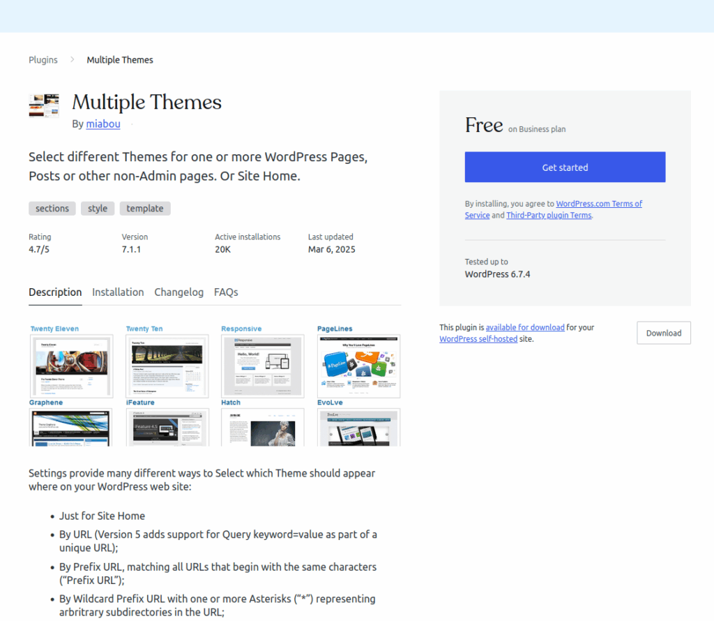 2. Install the multiple-themes plugin. You will find it here: https://wordpress.org/plugins/jonradio-multiple-themes/.